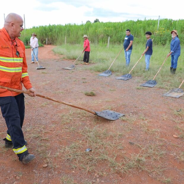 Durante a capacitação, os produtores aprenderam na prática a manusear os abafadores e a maneira correta de apagar os focos, assim como o uso dos equipamentos de proteção. “É importante que o combatente esteja vestido com calça comprida, camisa de manga comprida e, se possível, uma camisa cobrindo o rosto”, orienta o bombeiro.
